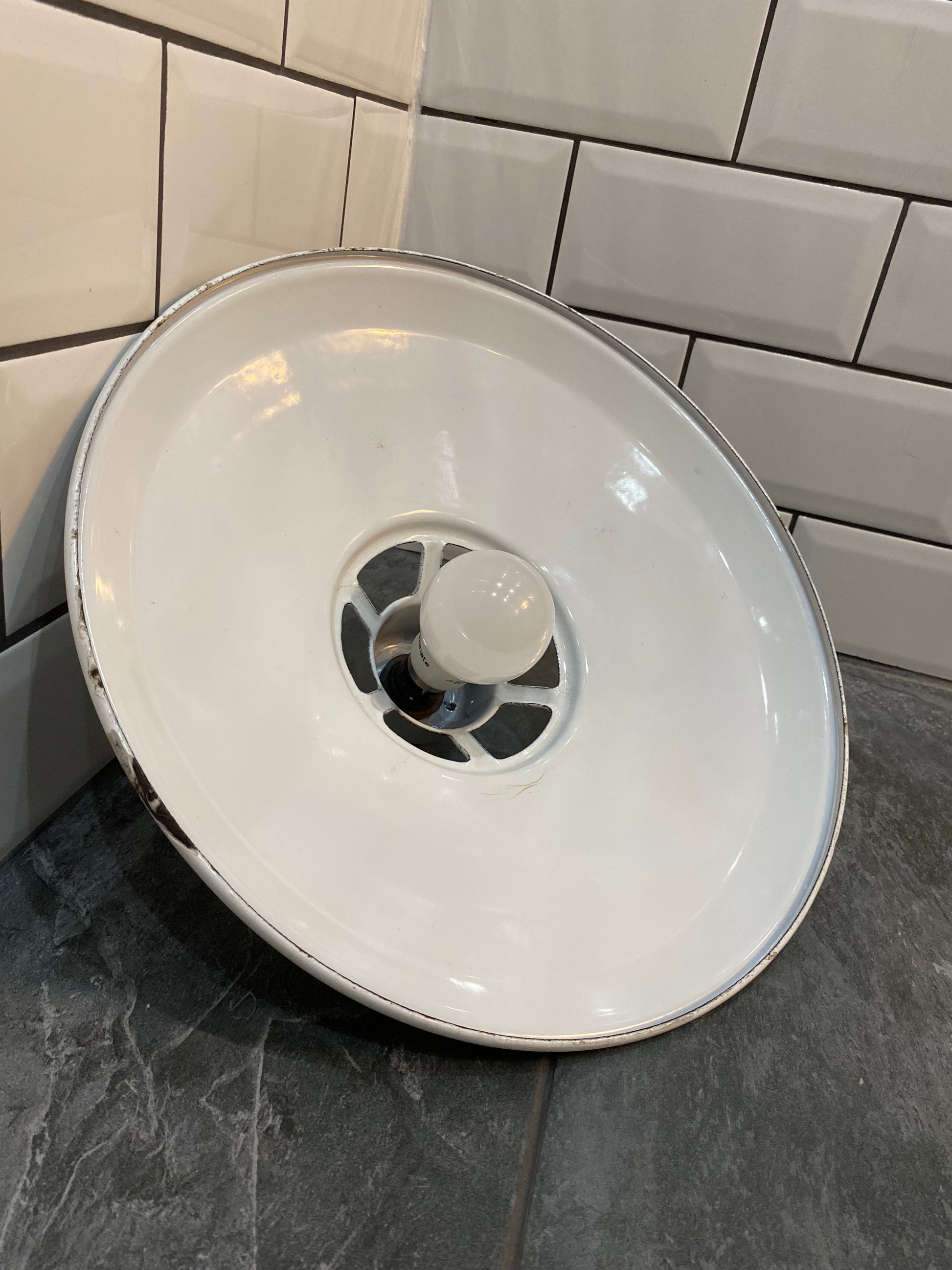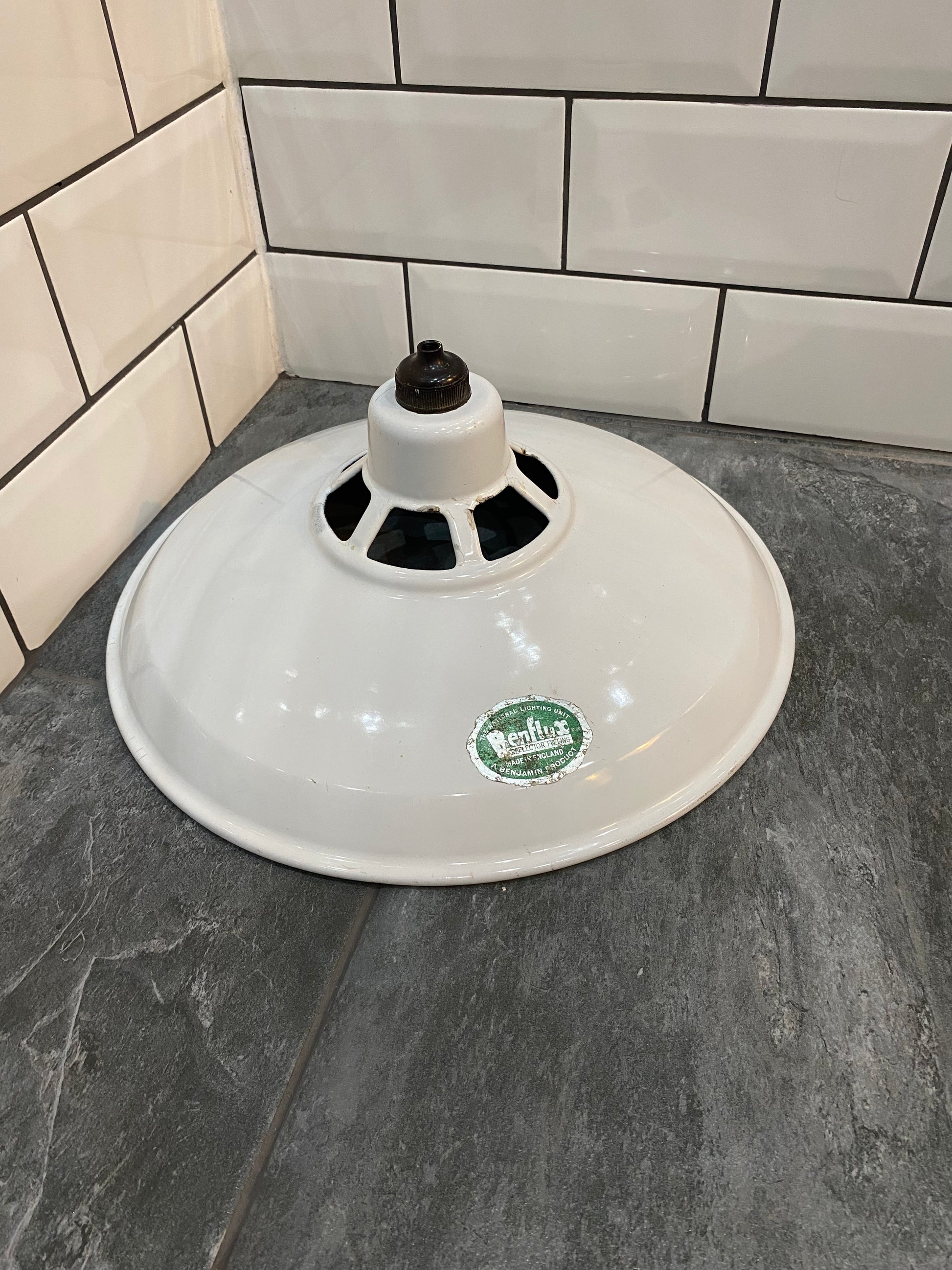 1930/40s White Enamel Benflux Pendant Light By Benjamin