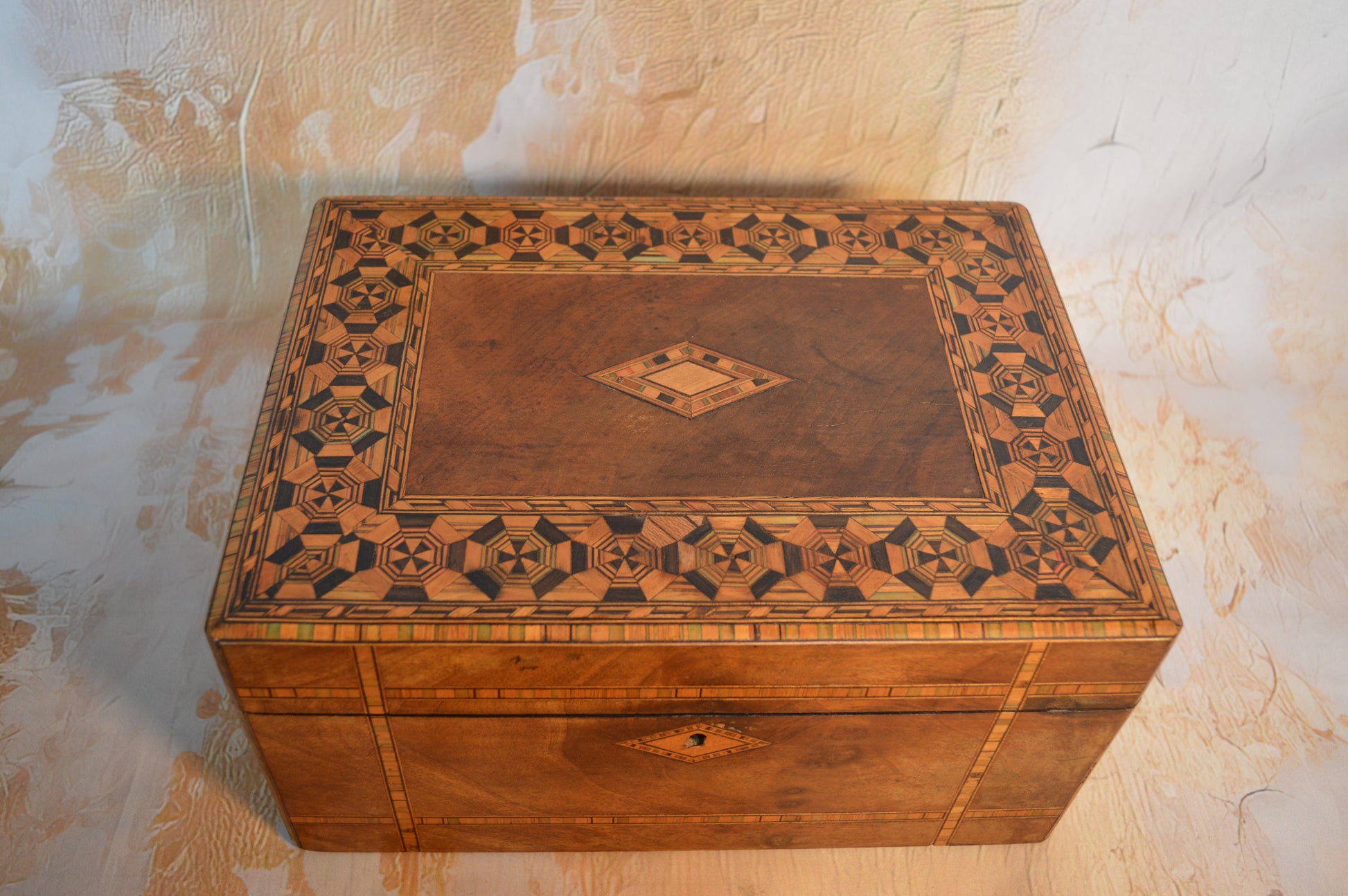 Mid-late 19th century walnut Tunbridge ware box. Lovely detailed marquetry.