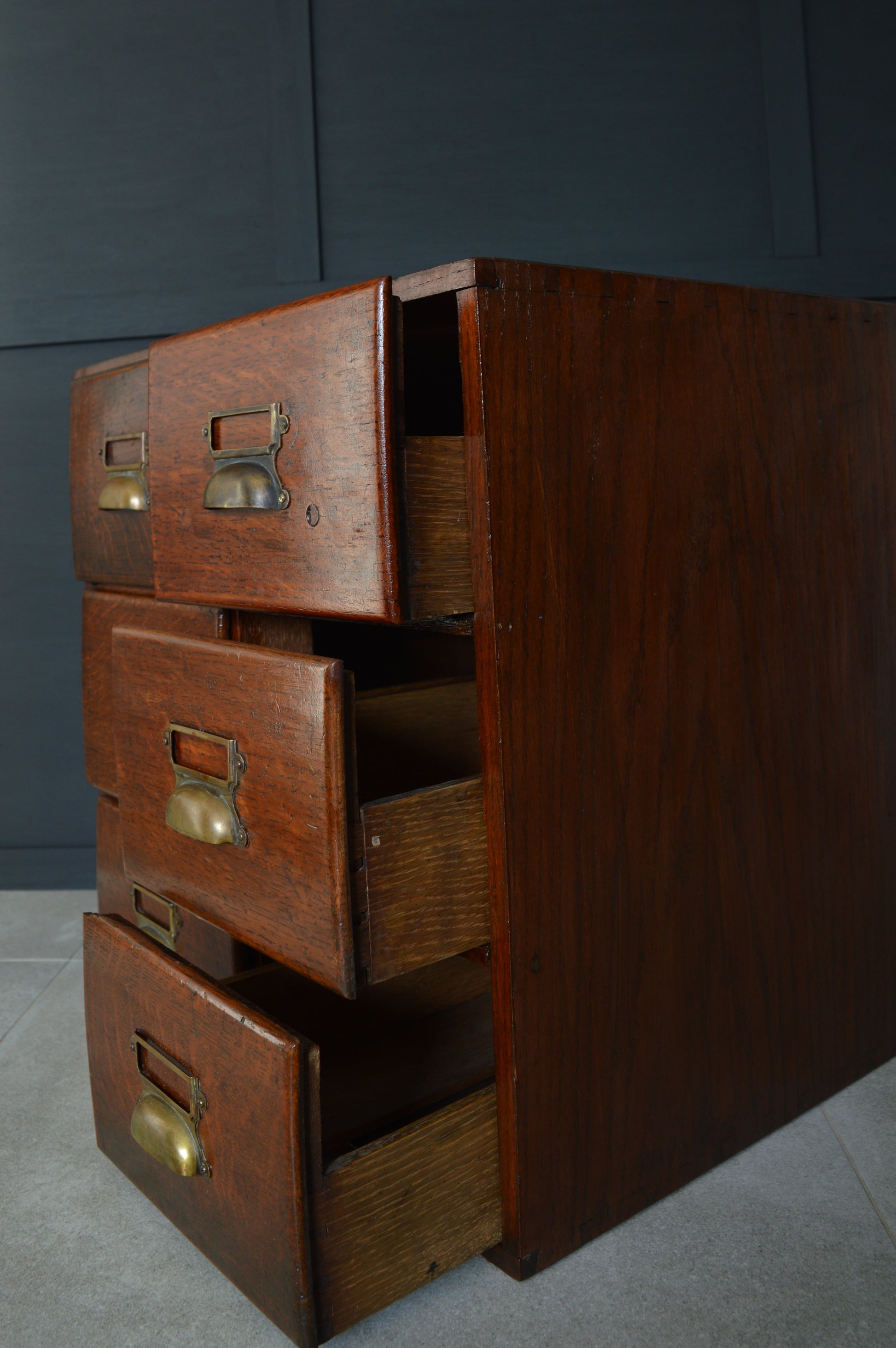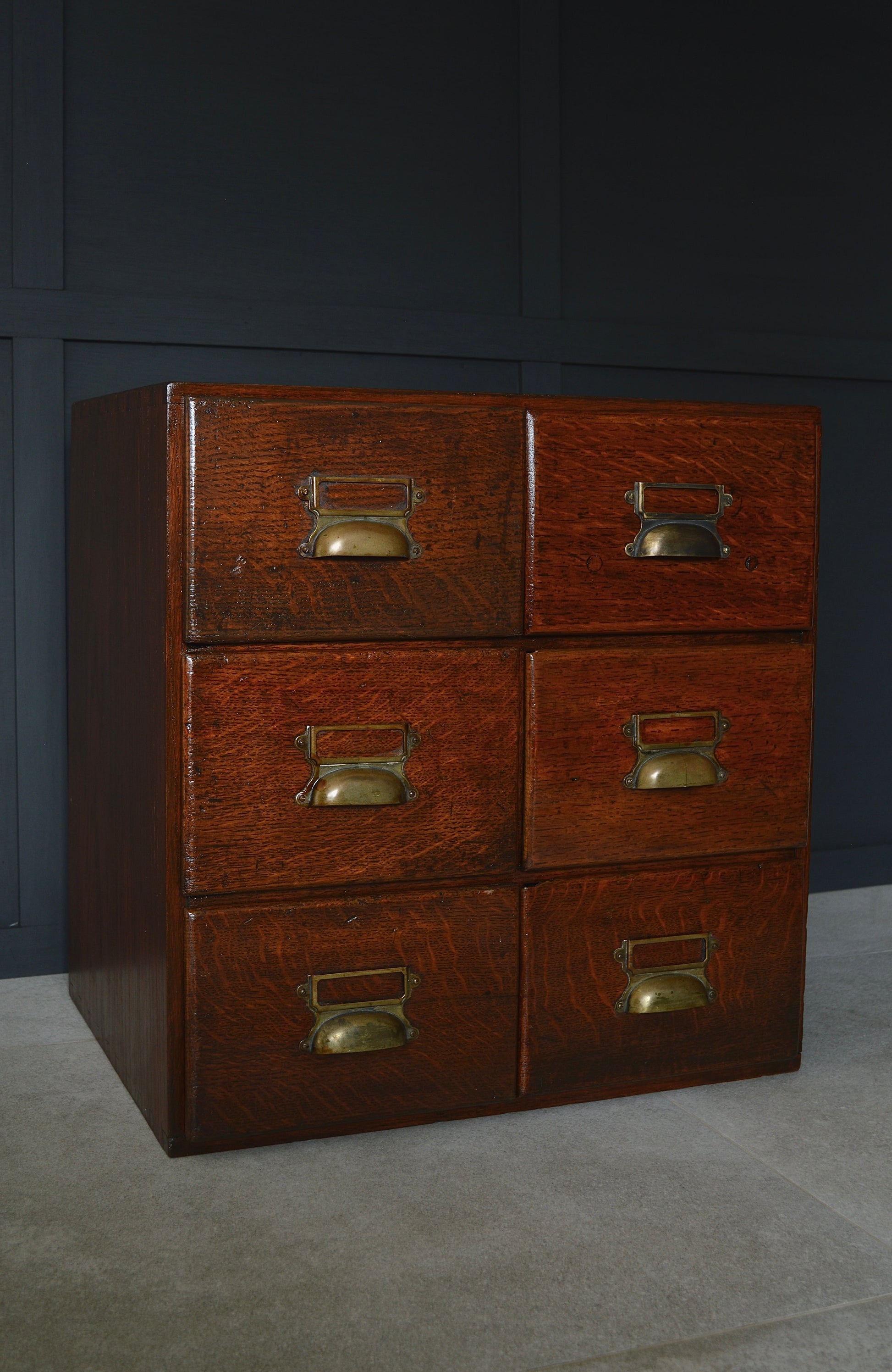An early 20th Century oak six drawer index cabinet