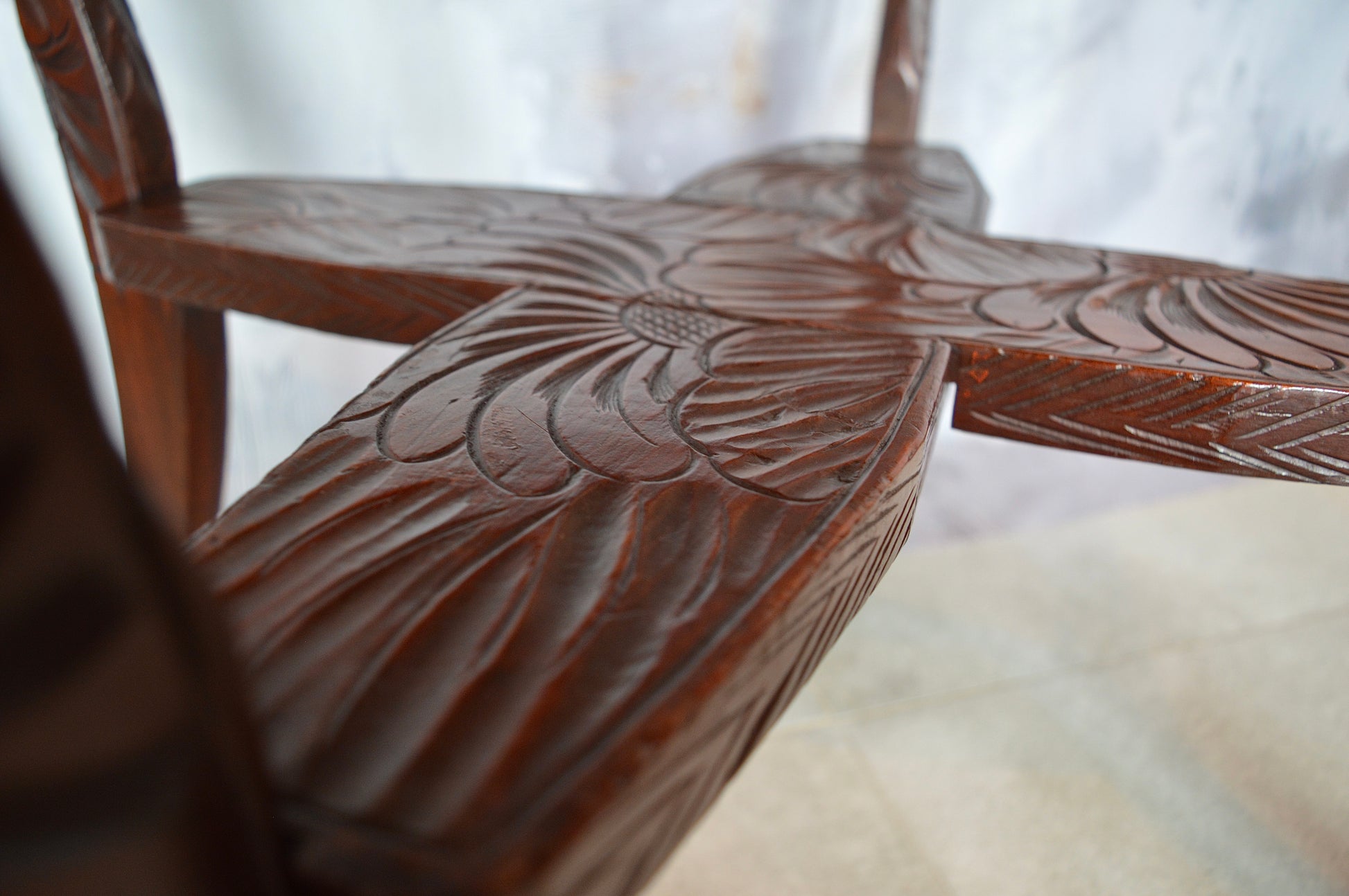 It has been hand carved from top to bottom with floral detailing - This type of design came in a range of variations, including plant stands, chairs and tables.