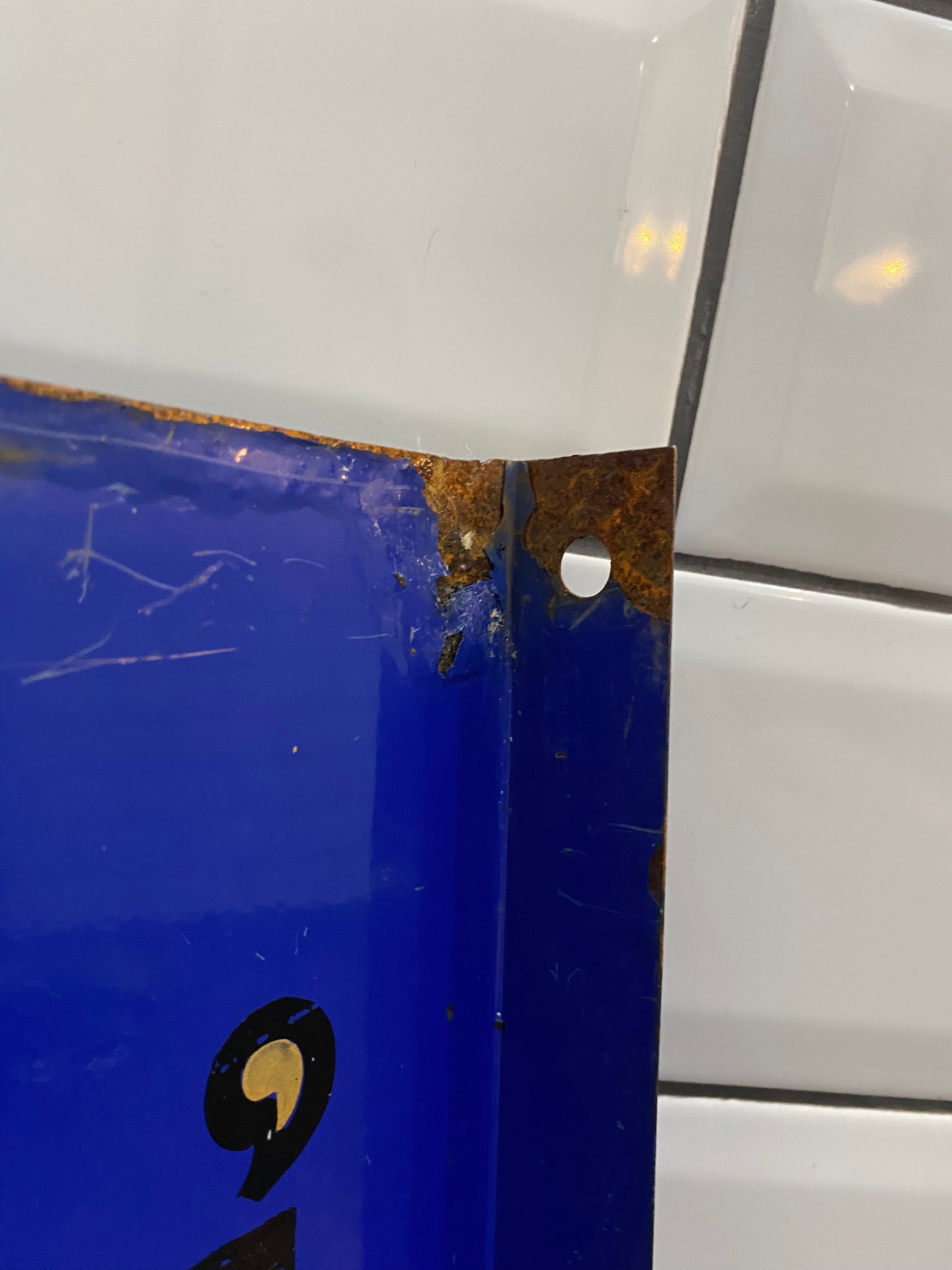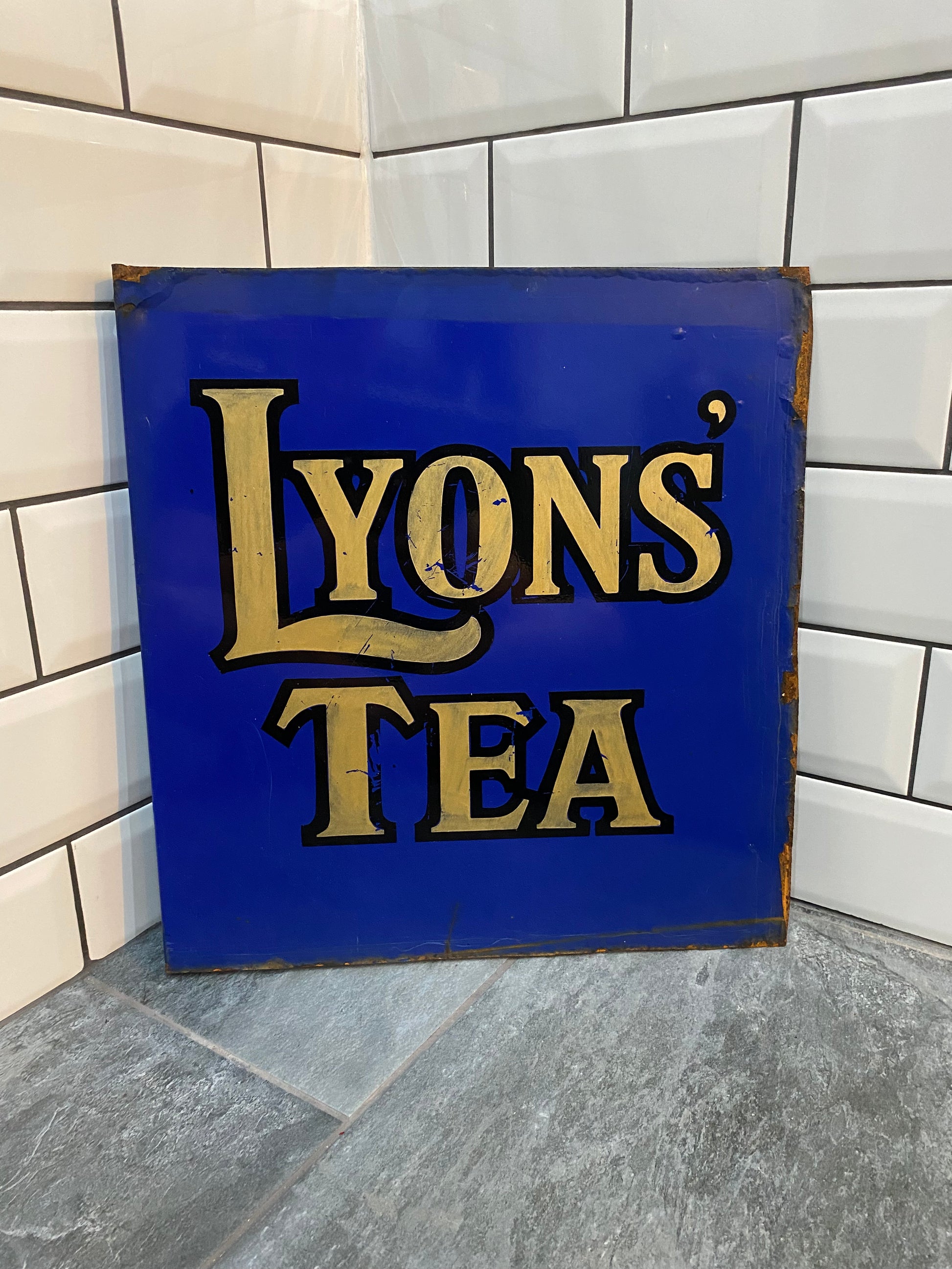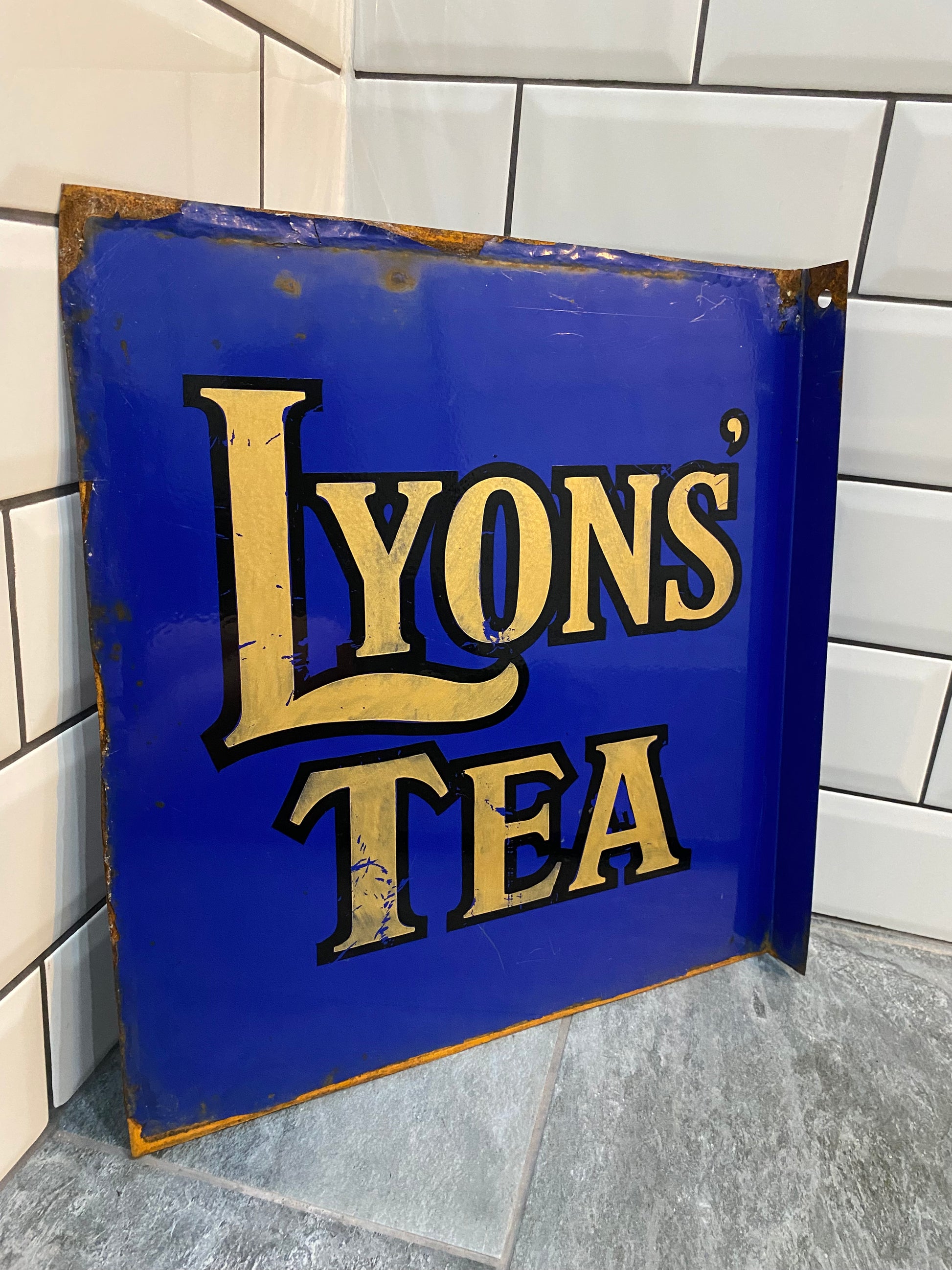 Add some vintage charm to your kitchen with this double sided Lyons Tea Enamel Sign! This quirky and fun sign features the iconic Lyons Tea logo and is perfect for tea lovers. Hang it in your kitchen or use it as a conversation piece at your next tea party.