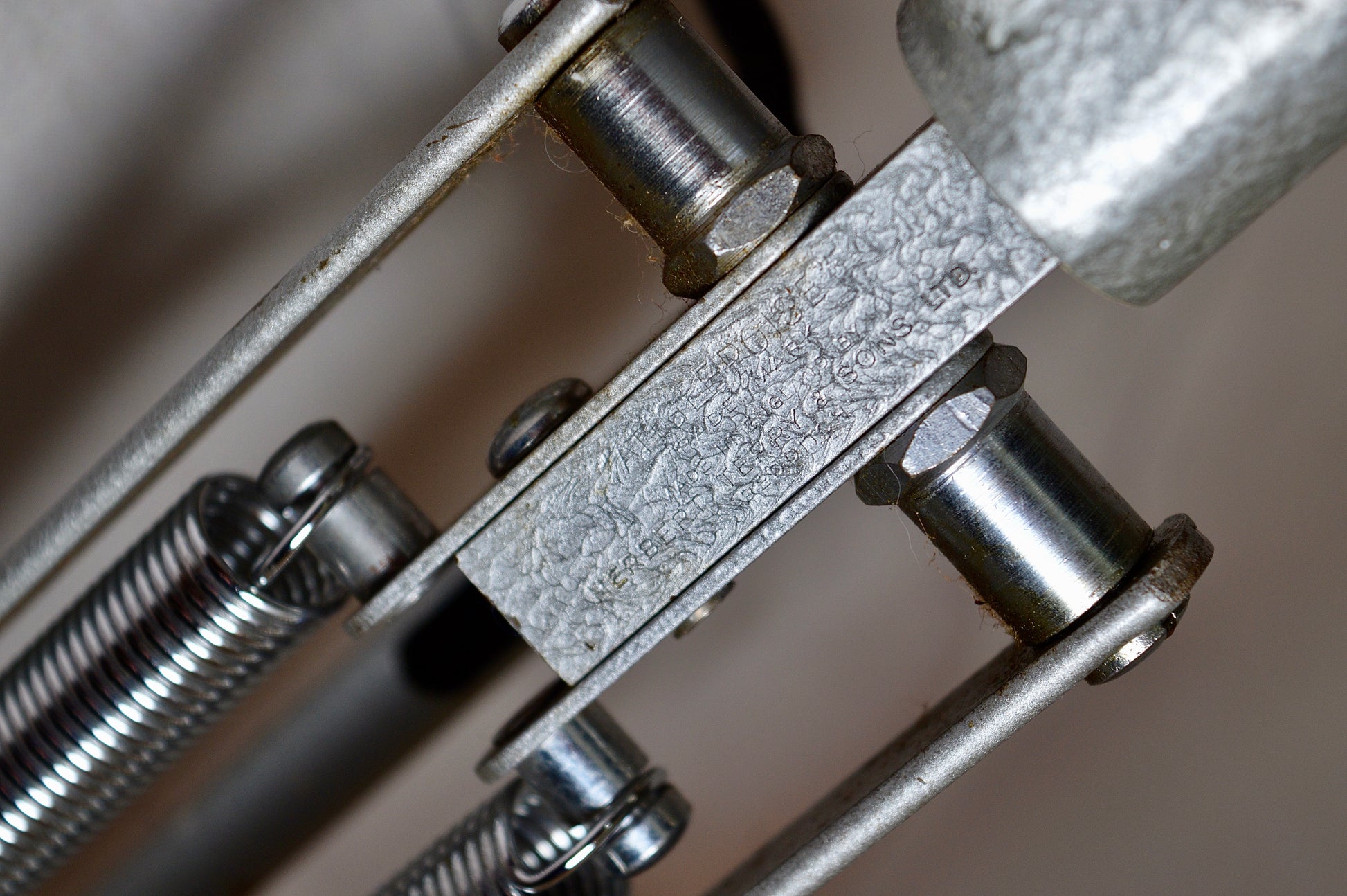 Rare 1940s Anglepoise 1413 task lamp by Herbert Terry & Sons. a classic example of British industrial design. Renowned for its balanced spring mechanism, this lamp offers exceptional adjustability and precise positioning, making it ideal for detailed tasks and inspections.